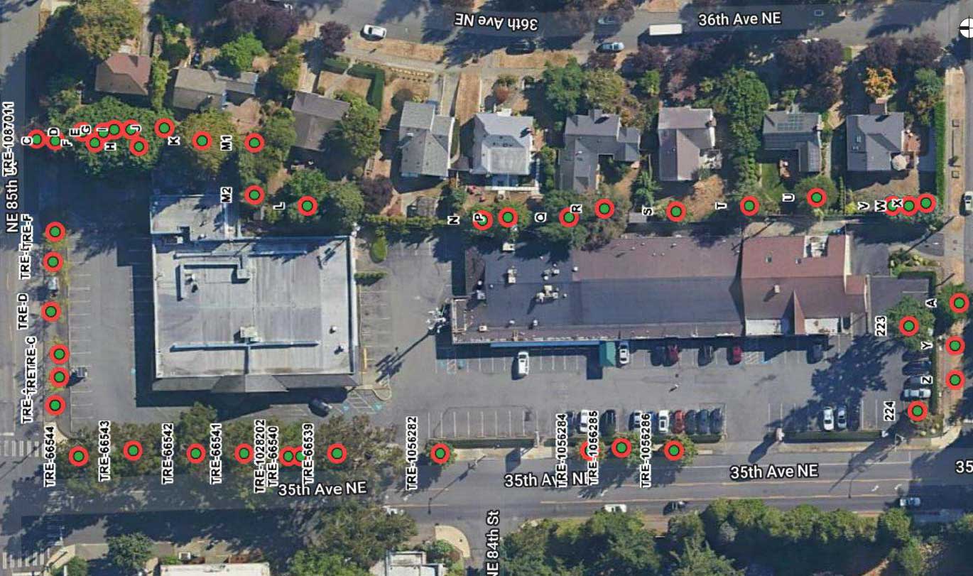 All the trees around and on the site were surveyed by an independent arborist for species, health, and designation with the City of Seattle’s Tree Ordinance.